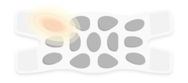 Fix the 2 lower adhesive surfaces to the skin with the back of your hand from below to ensure optimum hold of the heat wrap.