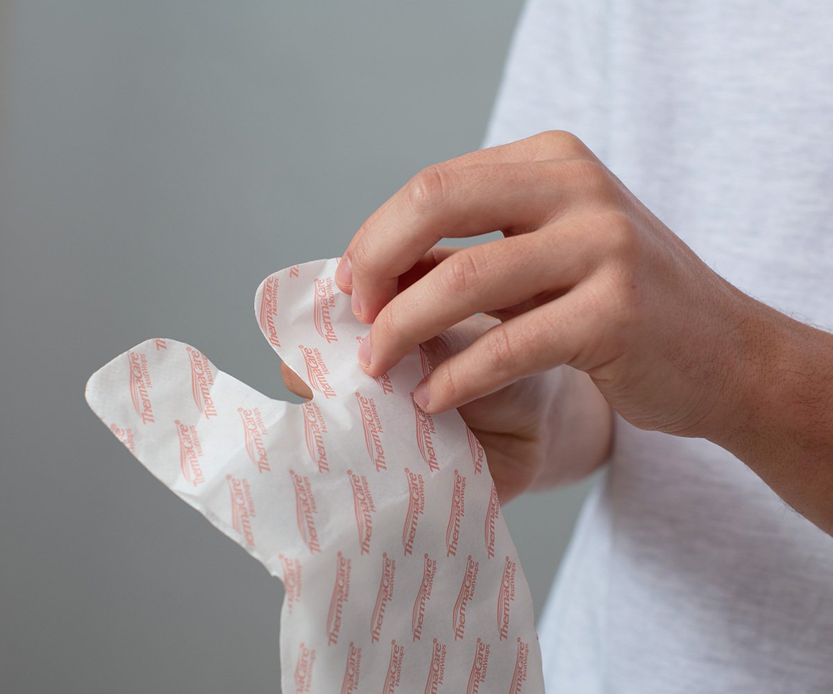 - We recommend that you first use ThermaCare® HeatWraps for larger areas of pain during the day to familiarise yourself with the heat application before you decide to use them while asleep. Alternatively, we recommend that you wear a thin piece of clothing under the ThermaCare® HeatWraps if you do not yet know how your body will react to the heat.