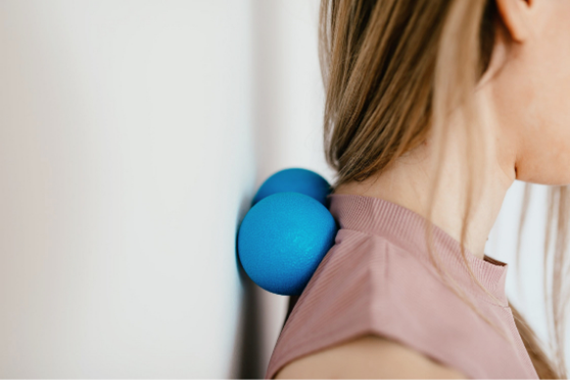 A simple form of self-massage is massage with a device such as a massage or tennis ball or a fascia roller. Sit upright and massage the affected neck and shoulder region with the opposite hand. Change side after two to three minutes.